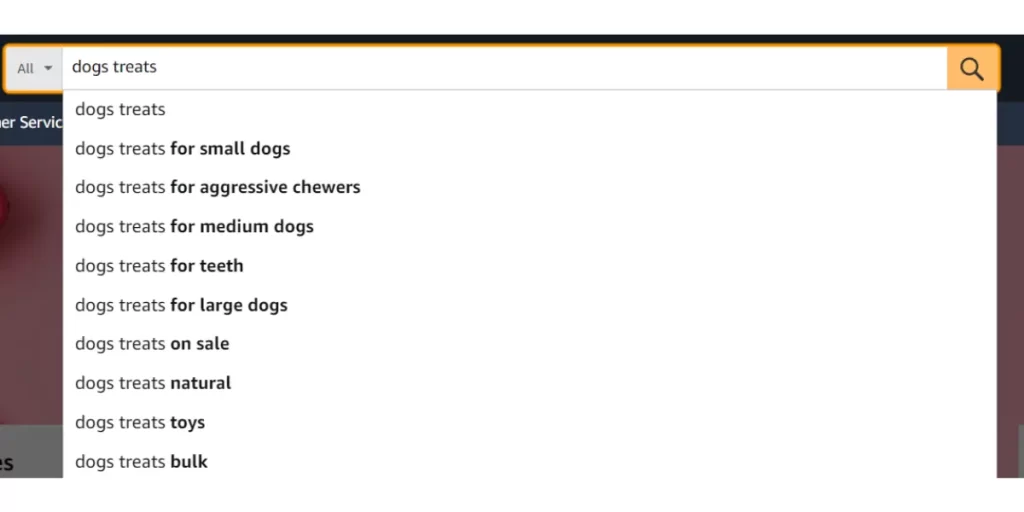 - Go to Amazon’s search bar and type something similar to what potential buyers might search for when looking for your product.